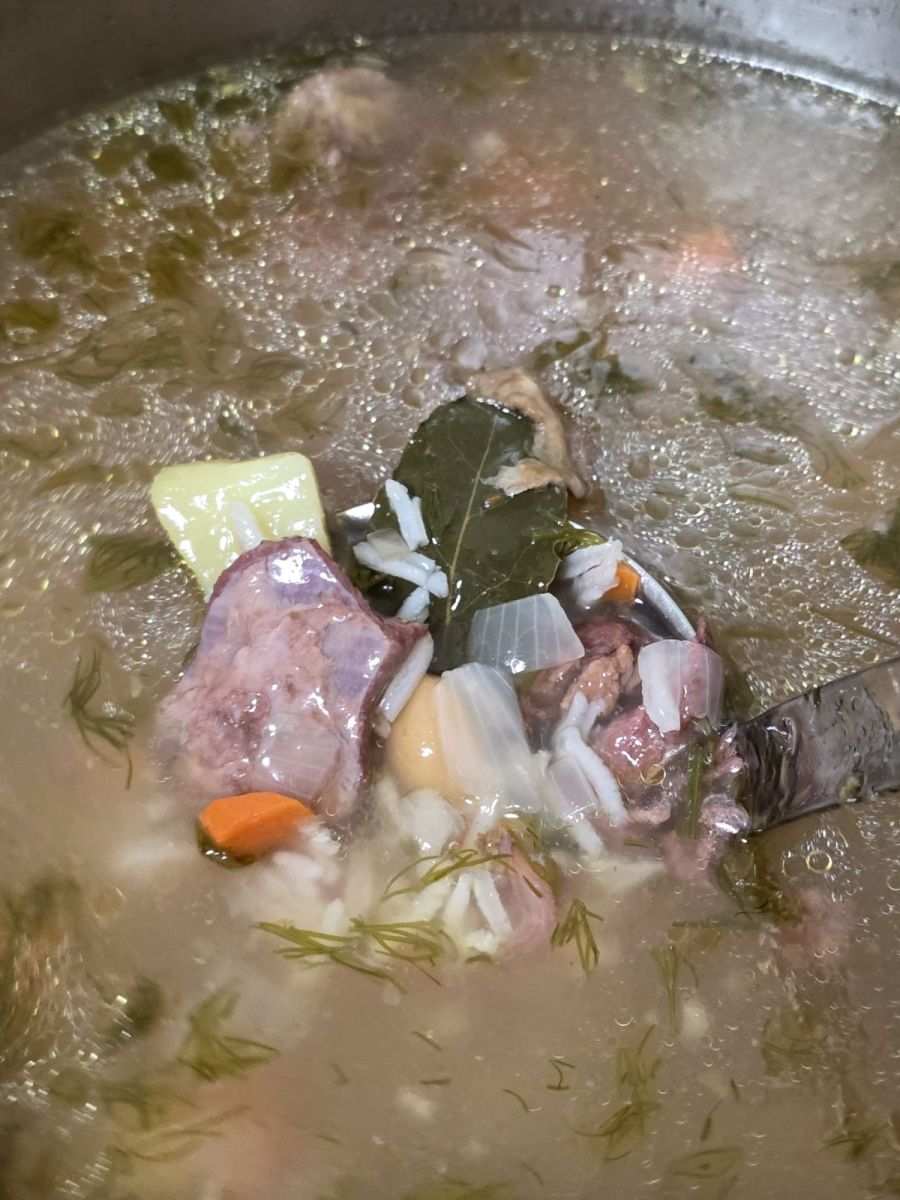 ✅ Морква — 1 шт. ✅ Цибуля — 1 шт. ✅ Олія — 1–2 ст. л. (для засмажки, якщо є час) ✅ Лавровий лист — 2 шт. ✅ Перець чорний горошком — 5–7 шт. (або духмяний 3 шт. - рекомендуємо) ✅ Сіль — 1 ст. л. з гіркою (потім довести “під себе”) ✅ Вода — 4 л (щоб у підсумку вийшла повна 5-літрова каструля) ✅ Зелень (кріп/петрушка) — за смаком ✅ Часник — 3 зубчики (за бажанням, але це варто того!)